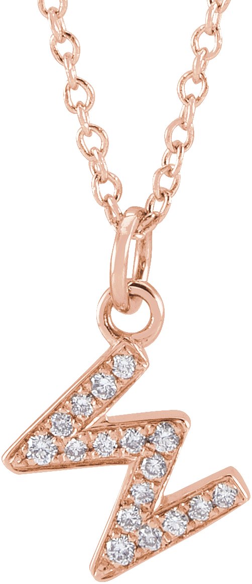 14K Rose .06 CTW Natural Diamond Petite Initial W 16 to 18 inch Necklace Ref 18053991