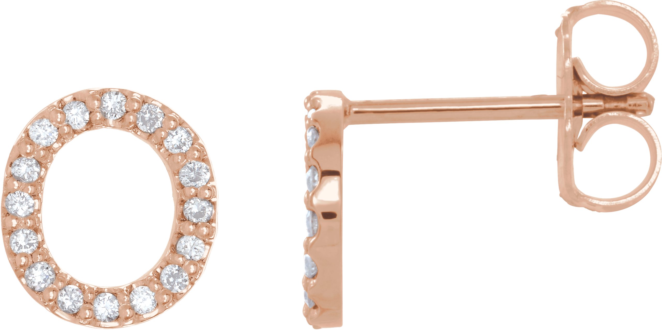 14K Rose .07 CTW Diamond Single Initial O Earring
