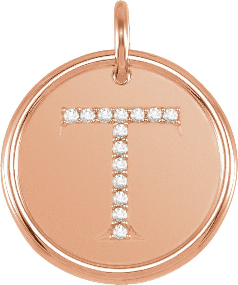 14K Rose .07 CTW Natural Diamond Initial T Pendant Ref 4977071