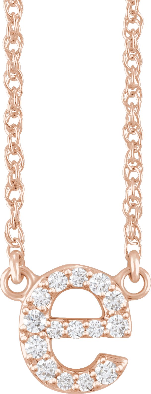14K Rose .08 CTW Natural Diamond Lowercase Initial E 16" Necklace