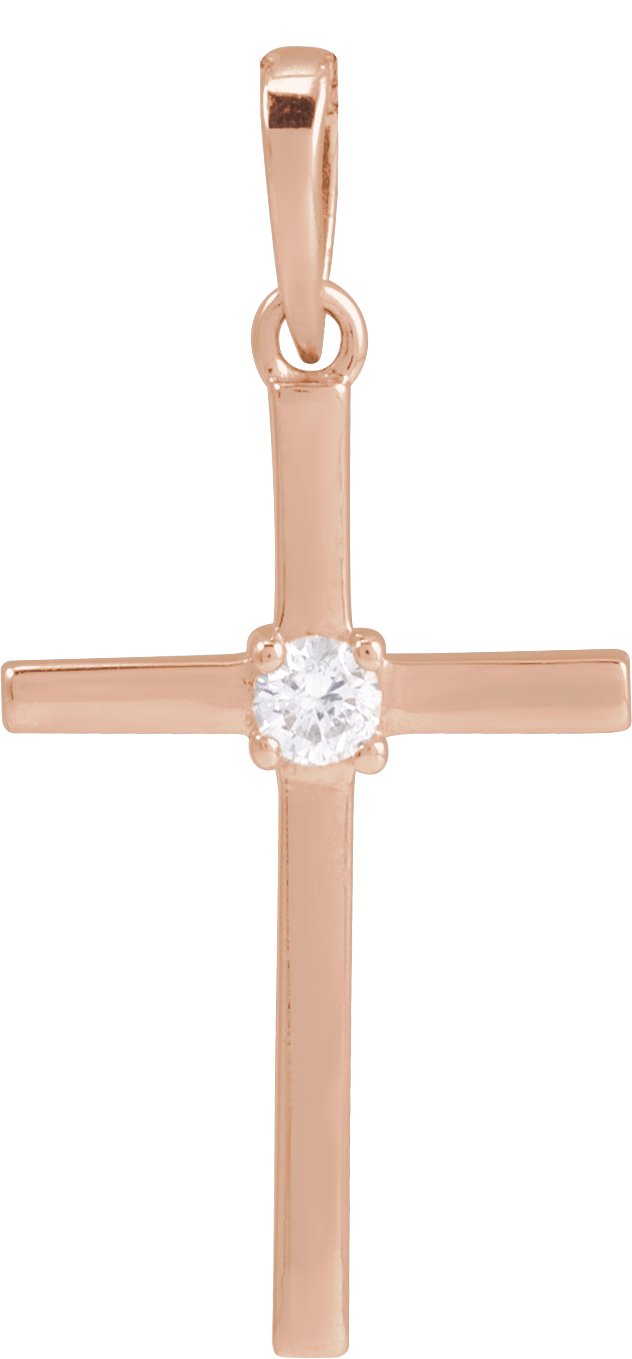 14K Rose 1/10 CT Natural Diamond Cross Pendant