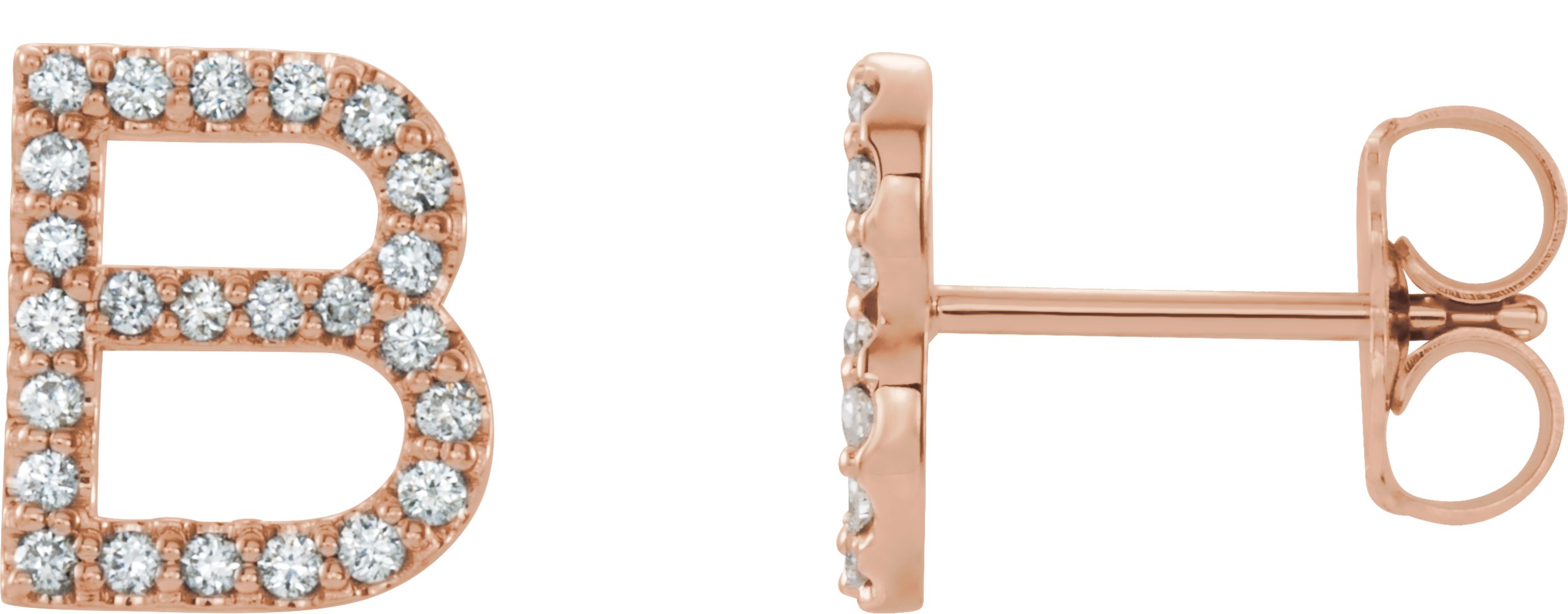 14K Rose 1/10 CTW Diamond Single Initial B Earring