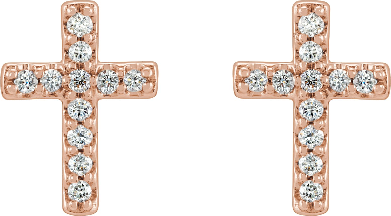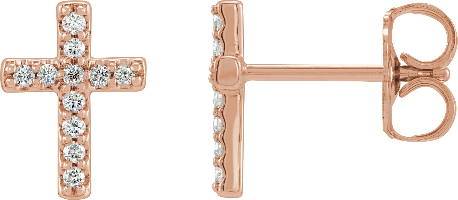 14K Rose 1/10 CTW Natural Diamond Cross Earrings