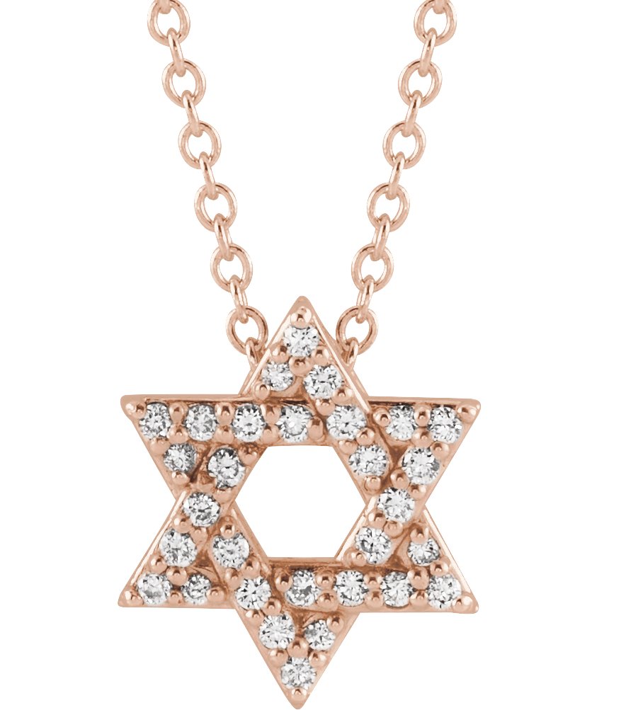14K Rose 1/10 CTW Natural Diamond Star of David 16-18" Necklace