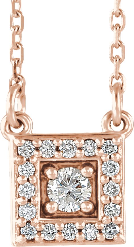 14K Rose 1/8 CTW Diamond Halo Style Square 16 18" Necklace Ref. 13395034