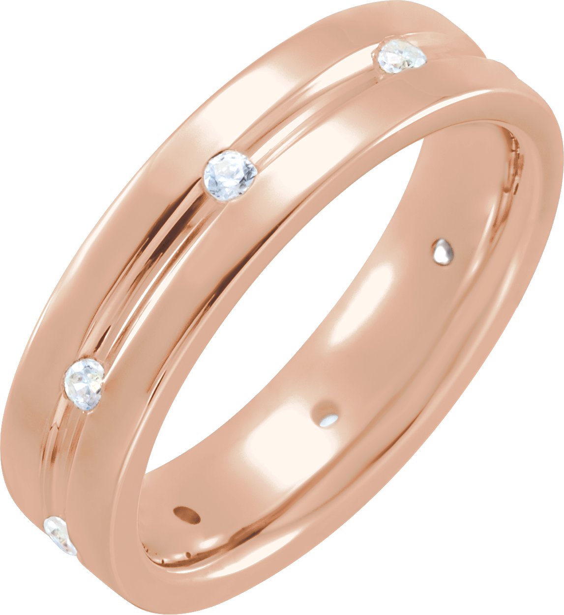 14K Rose 1/6 CTW Diamond Grooved Band Size 8