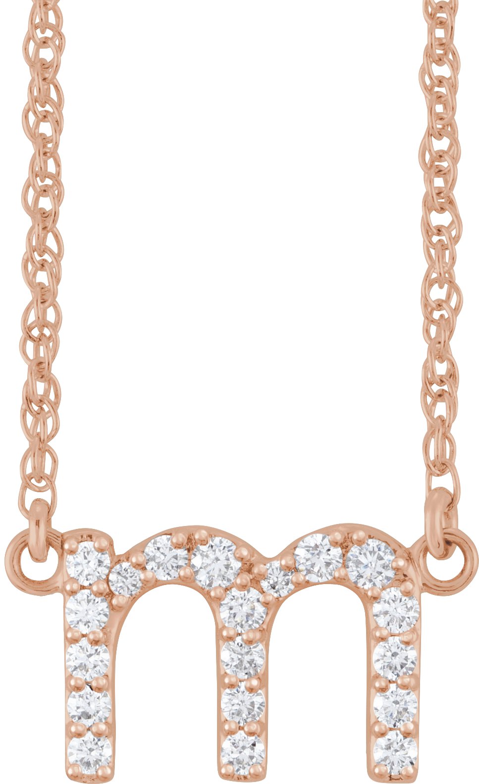 14K Rose 1/6 CTW Natural Diamond Lowercase Initial M 16" Necklace