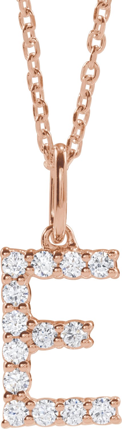 14K Rose 1/5 CTW Lab-Grown Diamond Initial E 16-18" Necklace