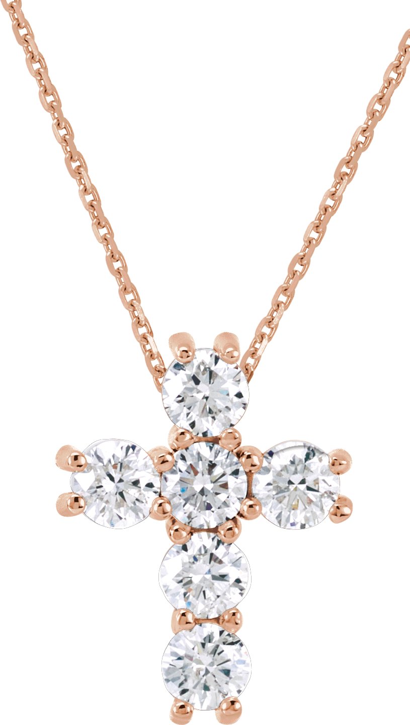 14K Rose 1/3 CTW Lab-Grown Diamond Cross 18" Necklace