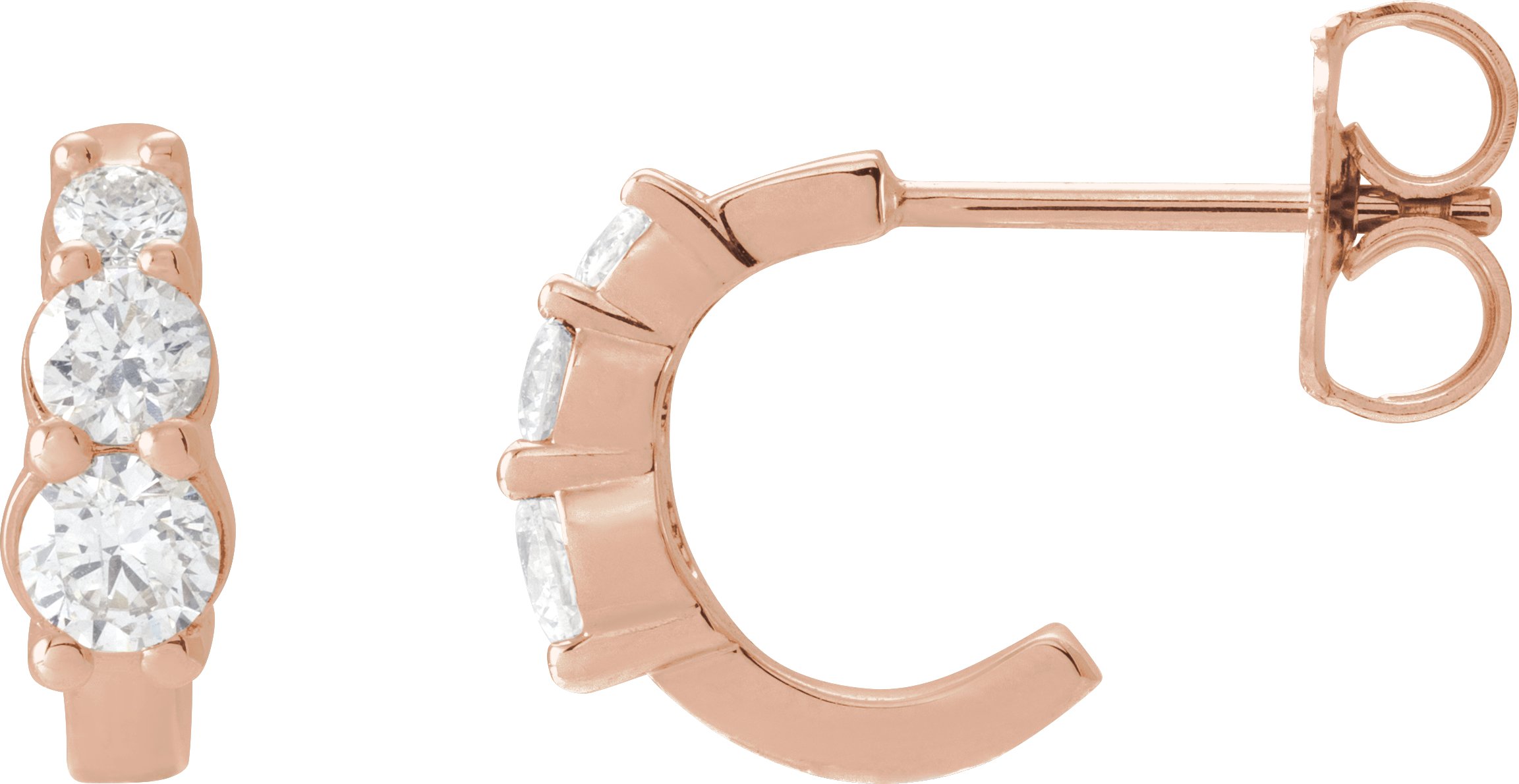 Description: 1/3 CTW Natural Diamond Graduated 3-Stone Hoop Earrings