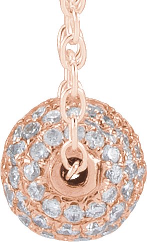 14K Rose .375 CTW Diamond Pave 6 mm Ball 16 to 18 inch Necklace