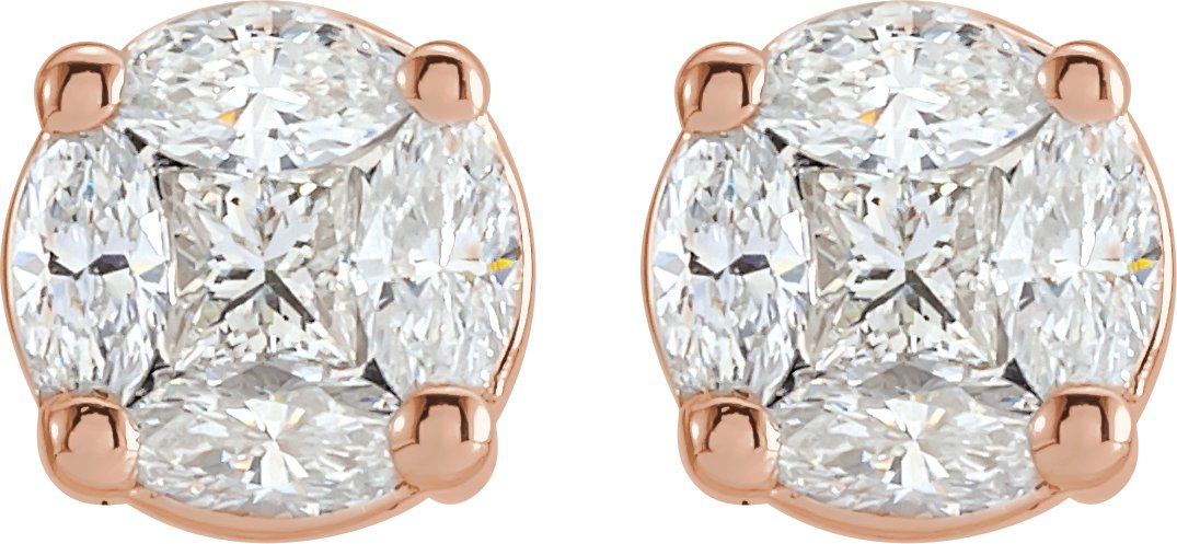 14K Rose .75 CTW Diamond Cluster Earrings