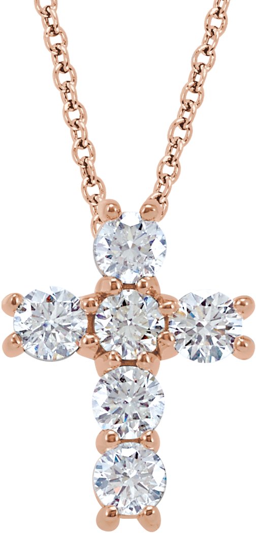 14K Rose 9/10 CTW Lab-Grown Diamond Cross 18" Necklace