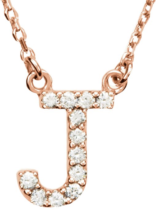 14K Rose 0.10 CTW Natural Diamond Initial J 16 inch Necklace Ref 9869931