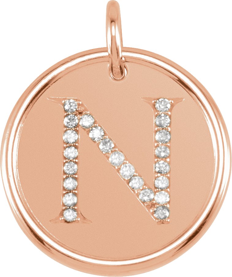 14K Rose 0.10 CTW Natural Diamond Initial N Pendant Ref 4951496