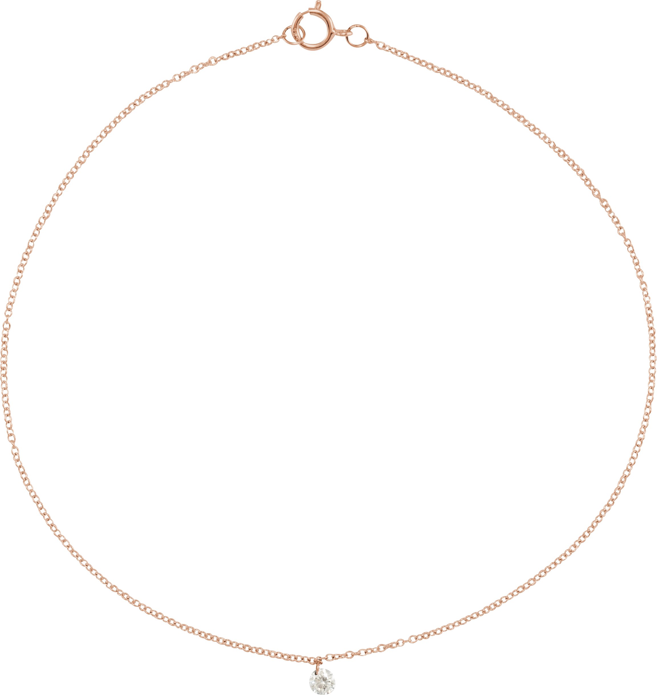 14K Rose 0.17 CT Drilled Natural Diamond Solitaire 8 9 inch Anklet Ref 18503164