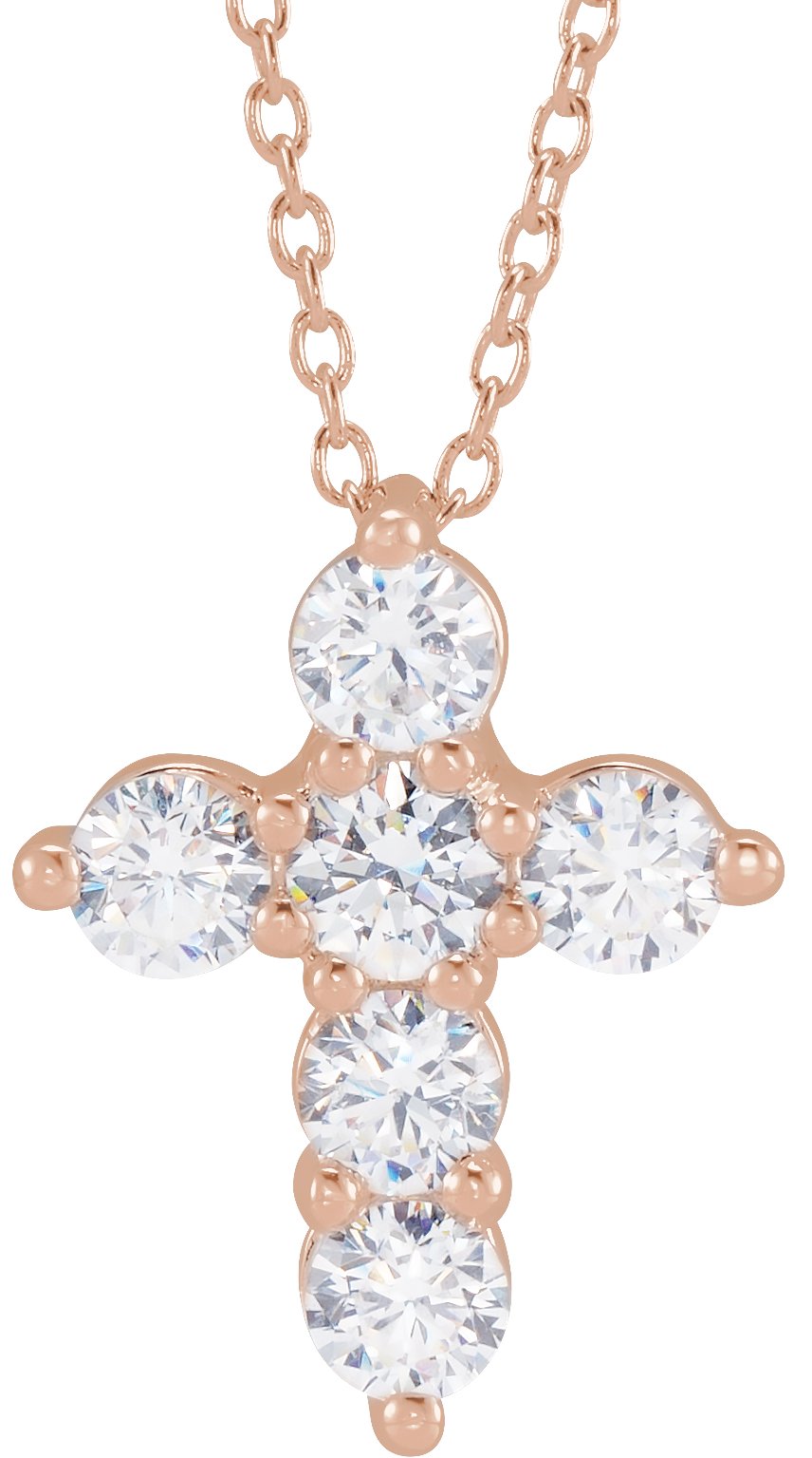 14K Rose 1 CTW Lab Grown Diamond Cross 18 inch Necklace Ref 18590806