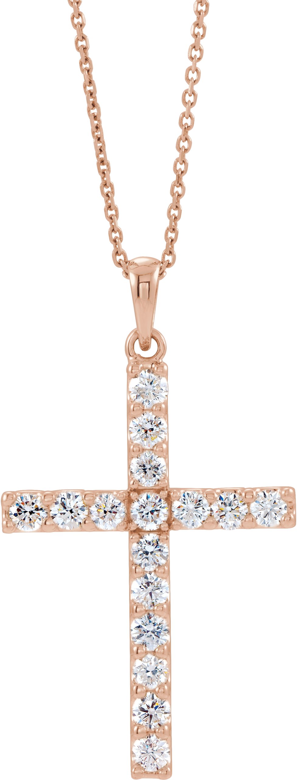 14K Rose 1 3/8 CTW Natural Diamond Cross 18" Necklace