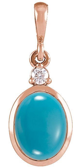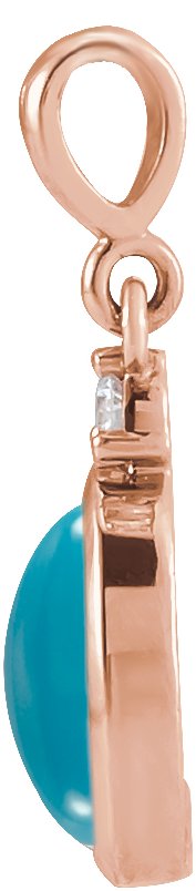 14K Rose 10x8 mm Natural Turquoise & .03 CT Natural Diamond Cabochon Pendant