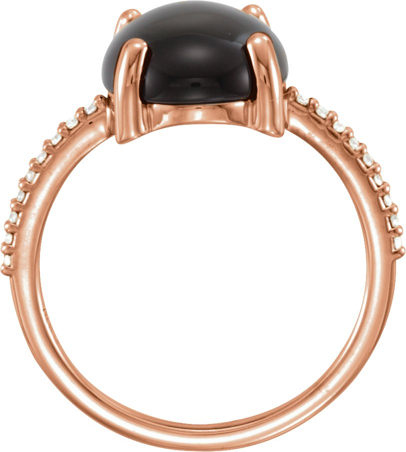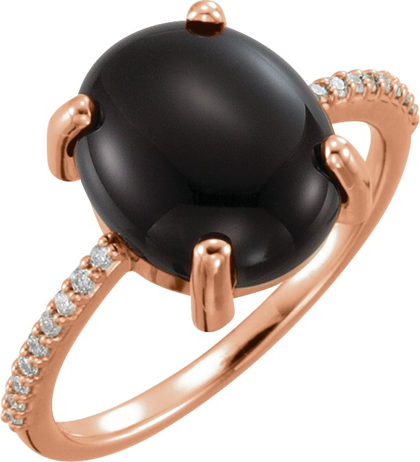 14K Rose 12x10 mm Oval Cabochon Onyx & .08 CTW Diamond Ring