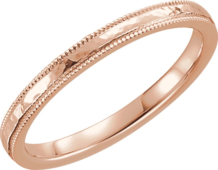 14K Rose 2 mm Flat Band with Hammer Finish and Milgrain Size 12 Ref 13148041
