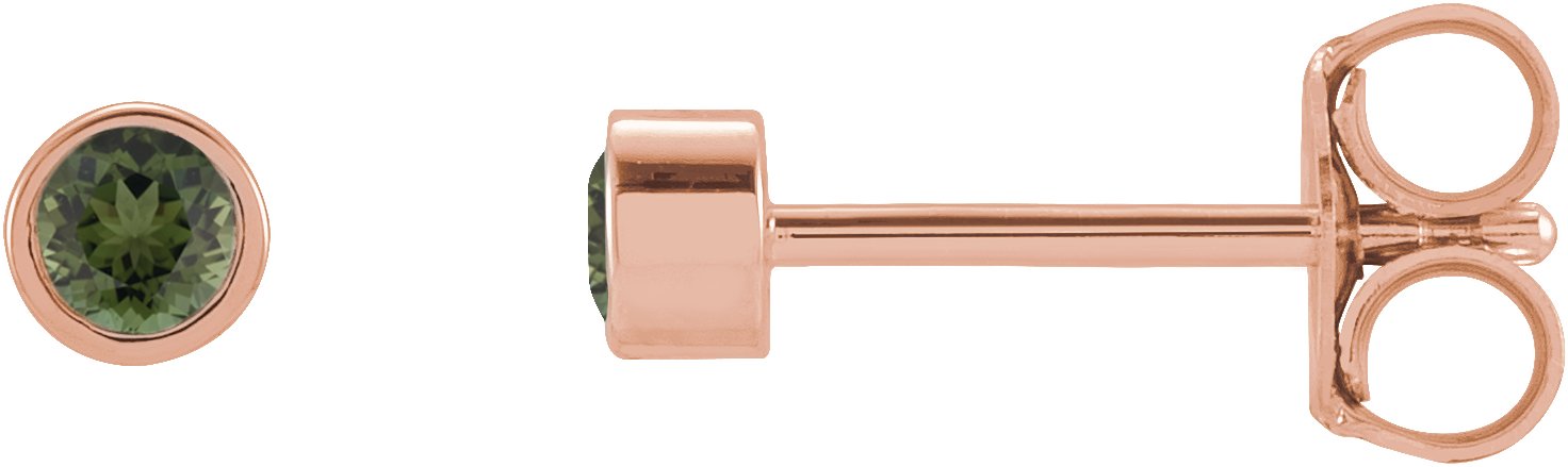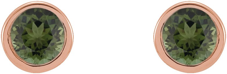 14K Rose 2 mm Round Green Tourmaline Micro Bezel-Set Earrings