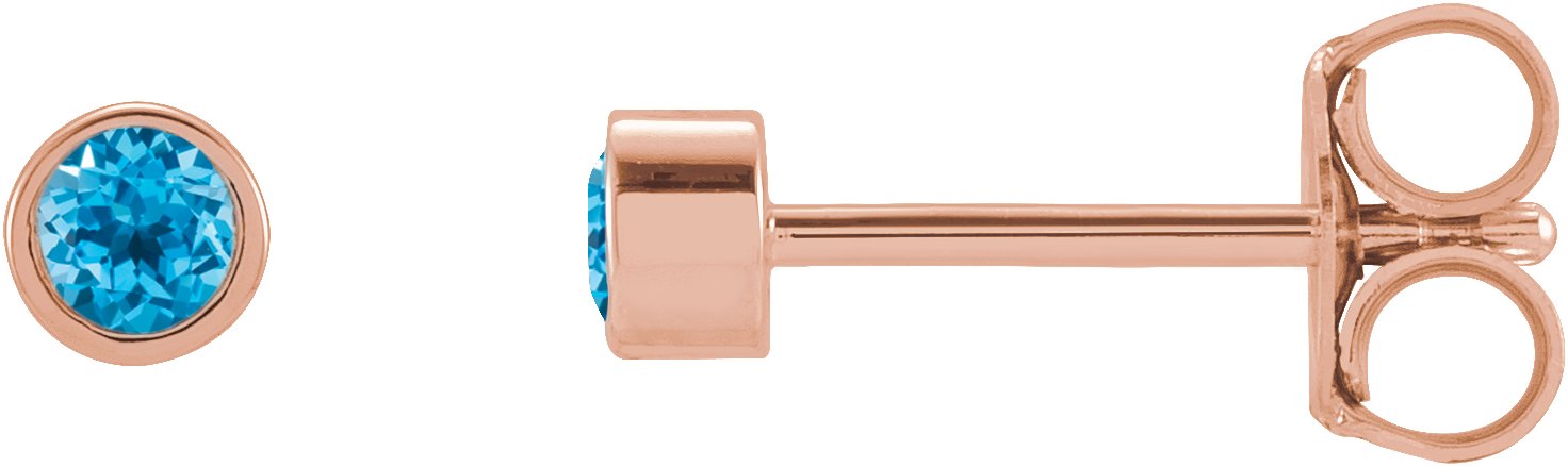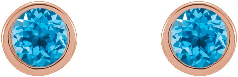 14K Rose 2 mm Round Swiss Blue Topaz Micro Bezel-Set Earrings