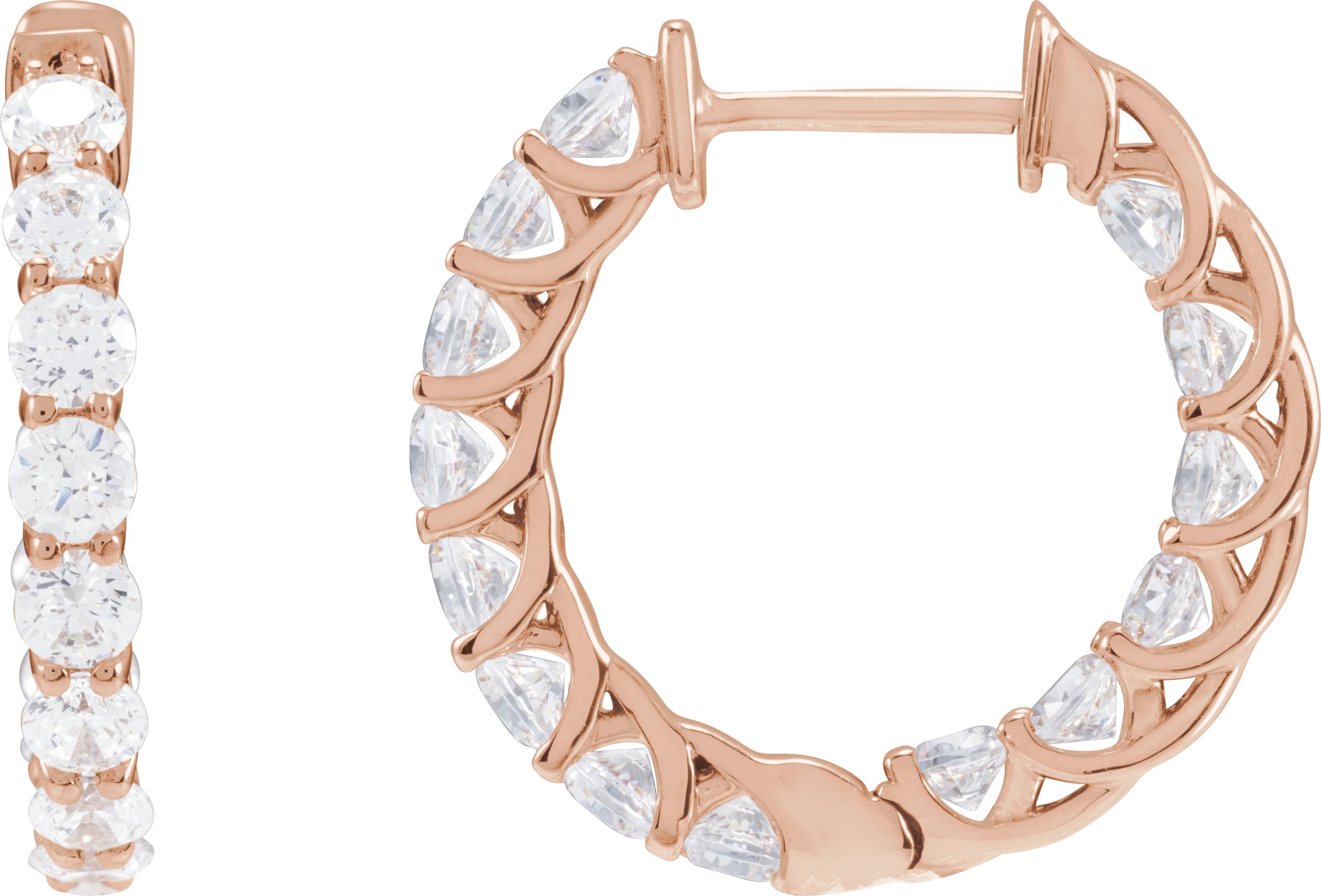 14K Rose 2 1/5 CTW Lab-Grown Diamond Inside-Outside Hoop Earrings