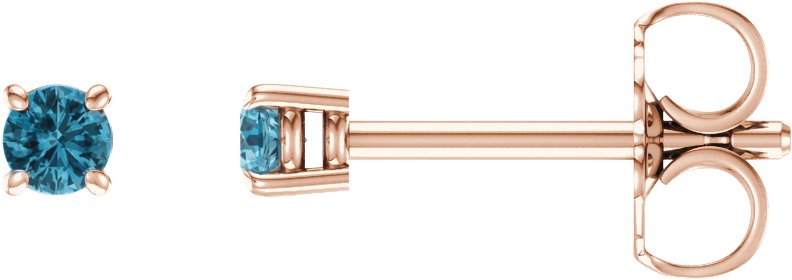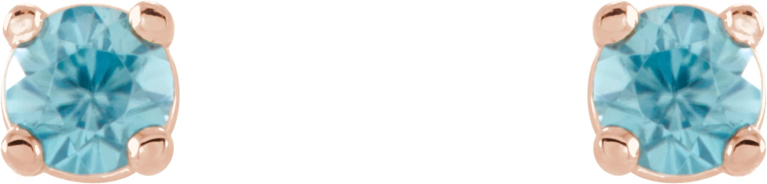 14K Rose 2.5 mm Round Blue Zircon Earrings