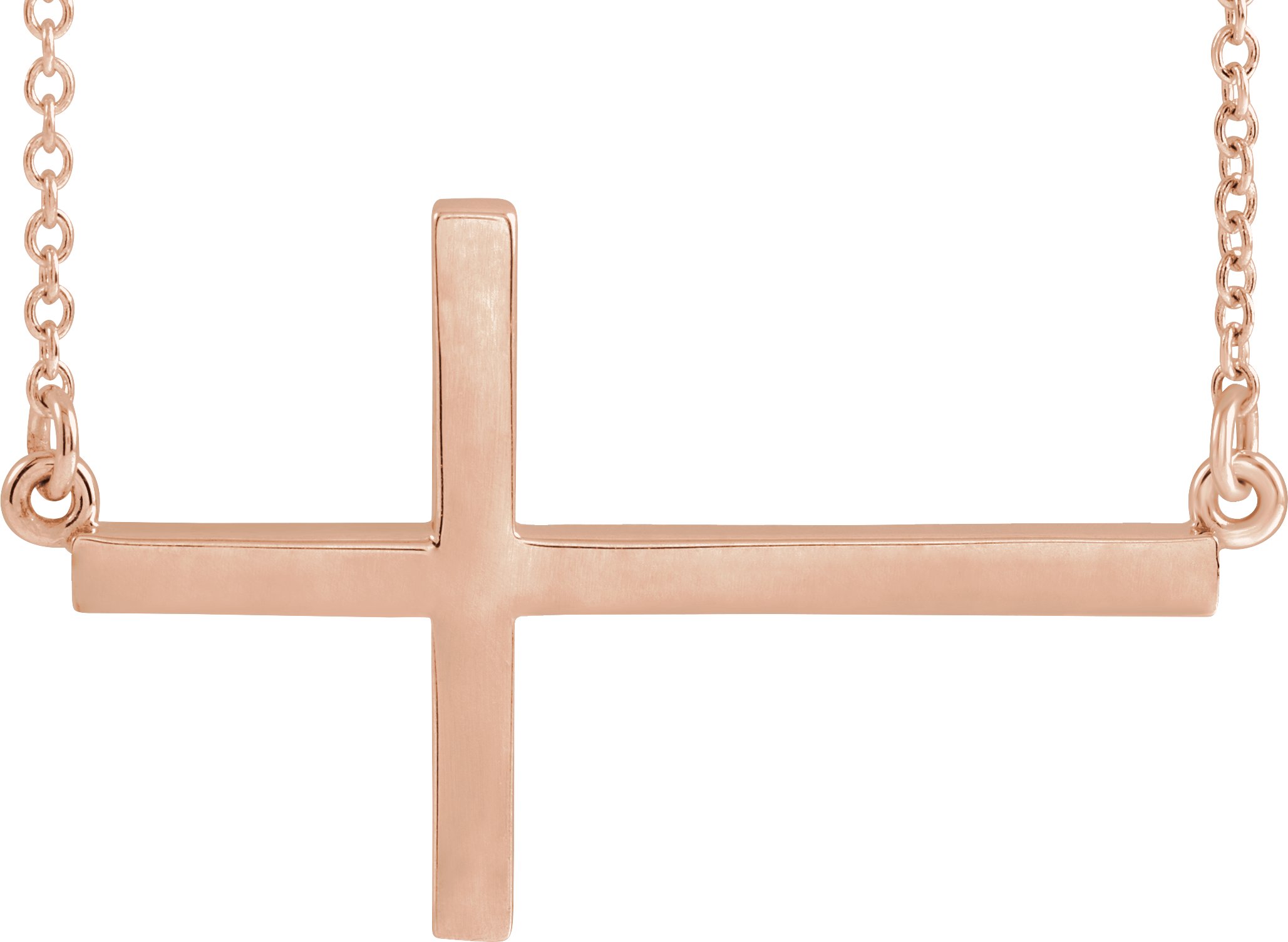 14K Rose 28x16.2 mm Sideways Cross 16-18" Necklace