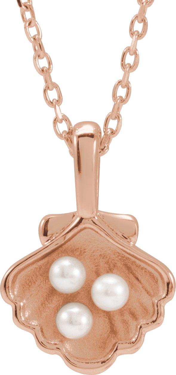 14K Rose 3-Stone Cultured White Seed Pearl Family Shell 16-18" Necklace