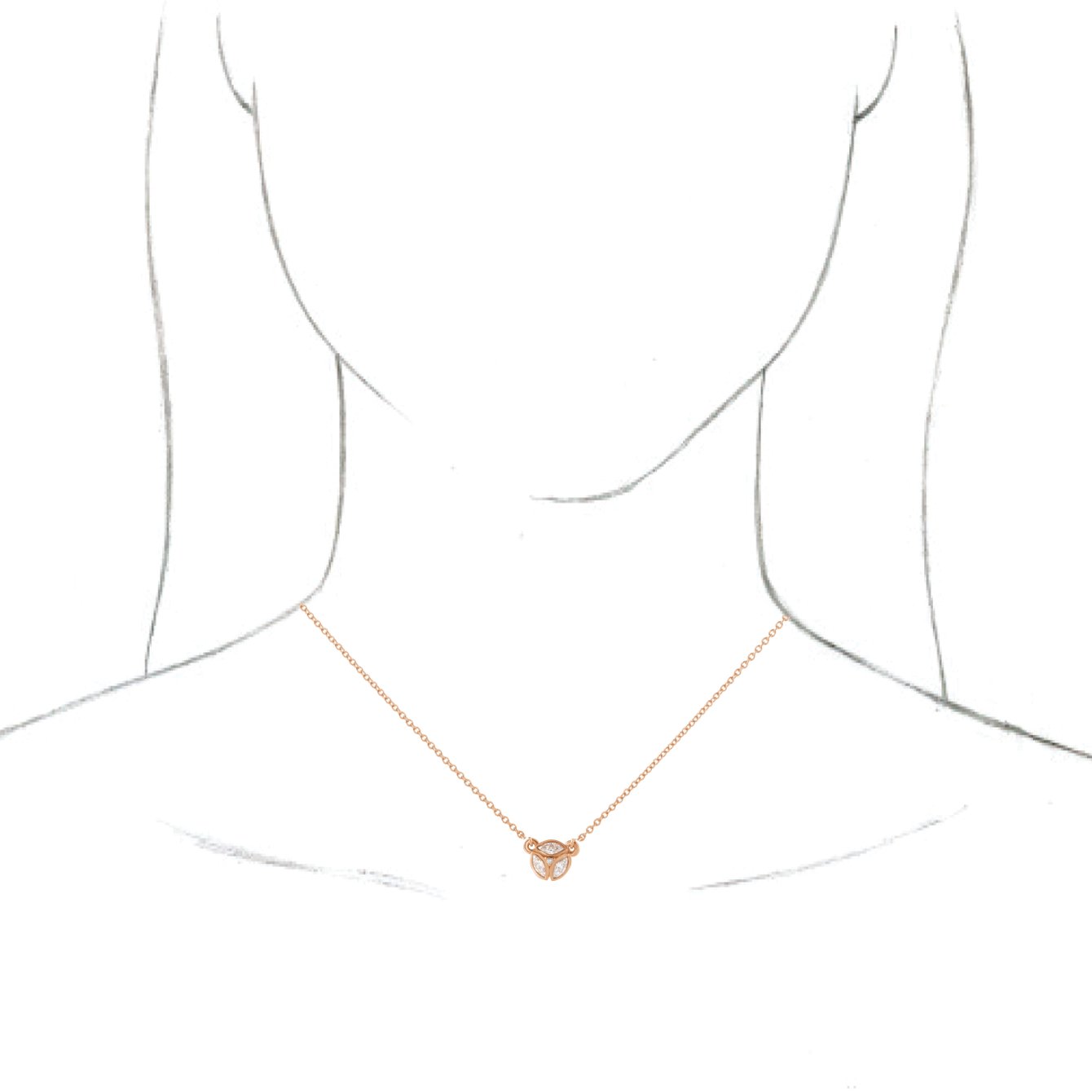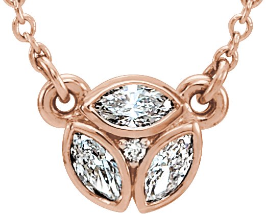 14K Rose 3 Stone Marquise Diamond 16 18" Necklace Ref. 12361359