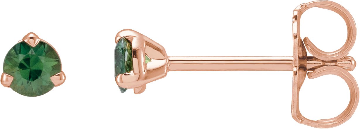 14K Rose 3 mm Natural Green Sapphire Earrings Ref 18419596
