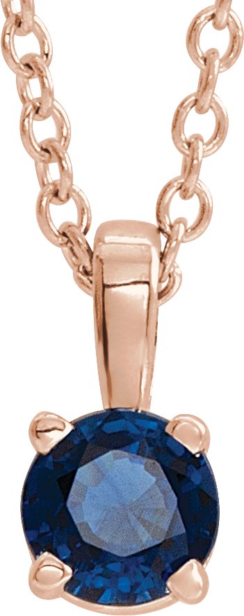 14K Rose 3 mm Round Blue Sapphire Birthstone Pendant