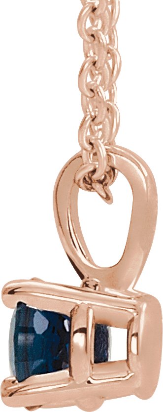 14K Rose 3 mm Round Chatham Lab Created Blue Sapphire Birthstone Pendant