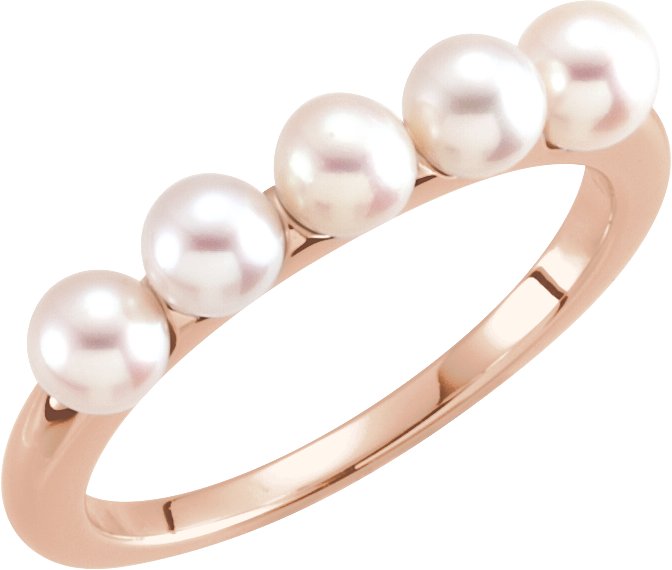 14K Rose 4 4.5 mm Five Stone Pearl Ring
