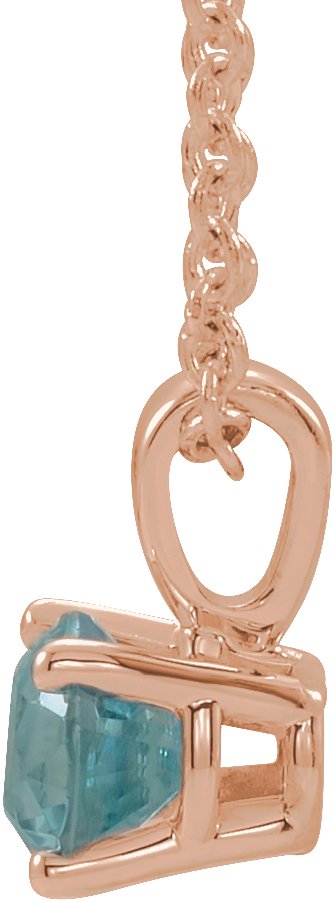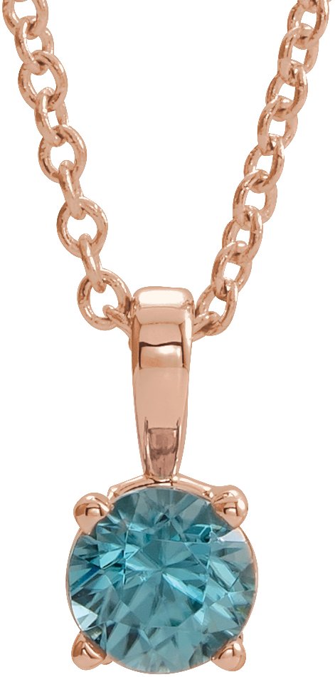 14K Rose 4 mm Round Blue Zircon Birthstone 16 18 inch Necklace