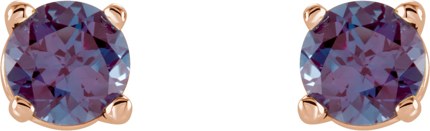 14K Rose 4 mm Round Chatham Created Alexandrite Earrings