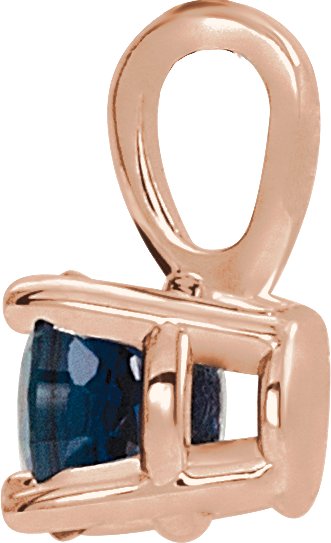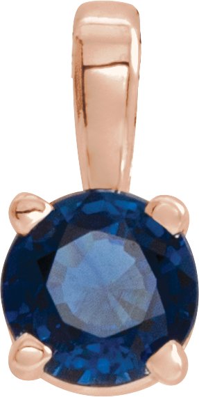14K Rose 4 mm Round Chatham Lab Created Blue Sapphire Birthstone Pendant