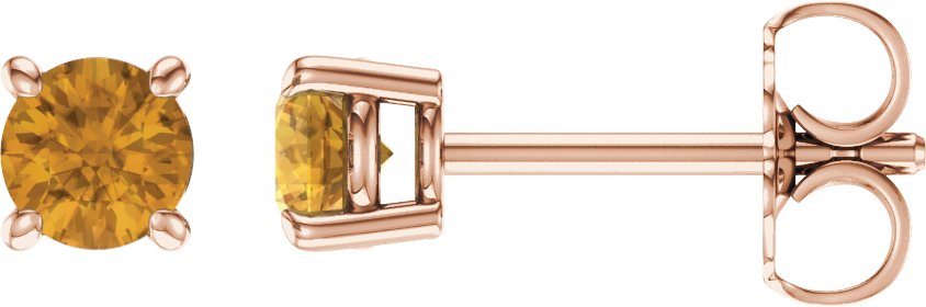 14K Rose 4 mm Round Citrine Earrings
