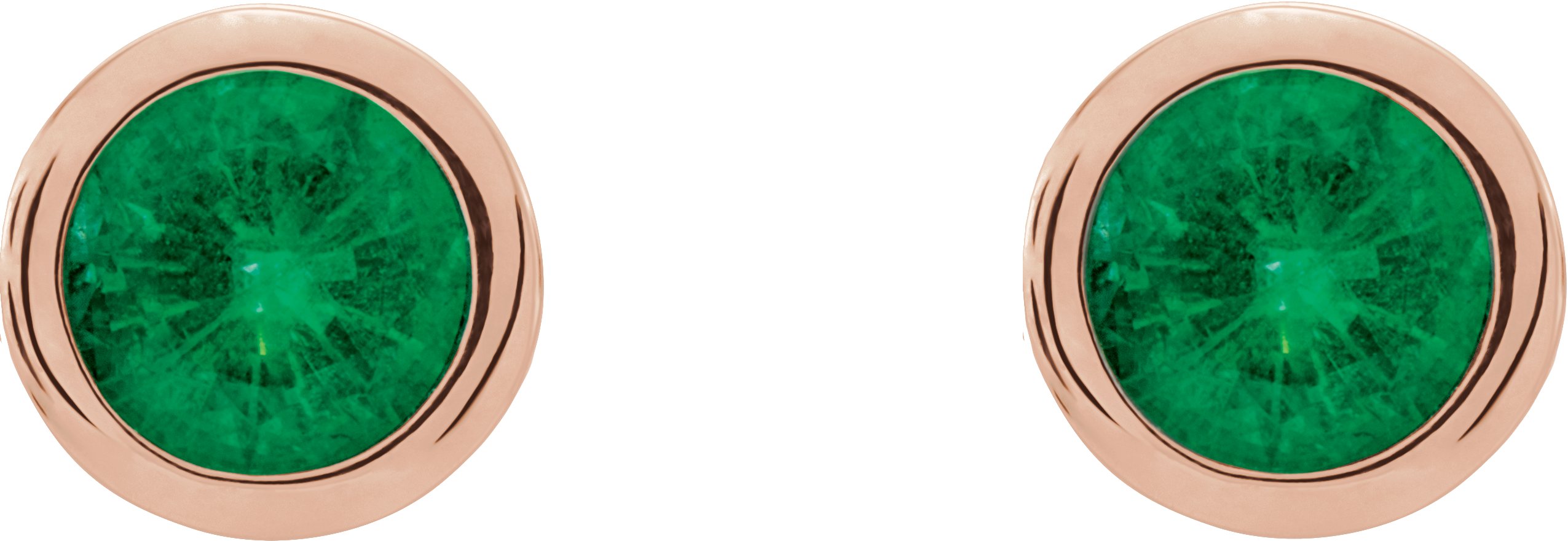 14K Rose 4 mm Round Genuine Emerald Birthstone Earrings