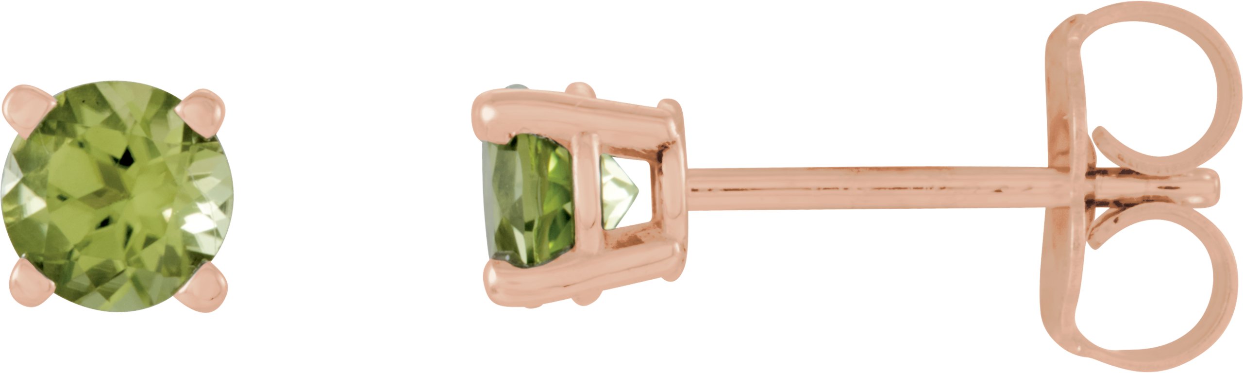 14K Rose 4 mm Round Peridot Earrings