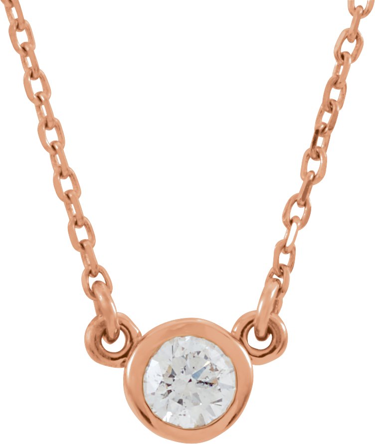 14K Rose 4 mm Round White Sapphire Bezel Set Solitaire 16" Necklace Ref. 15244616
