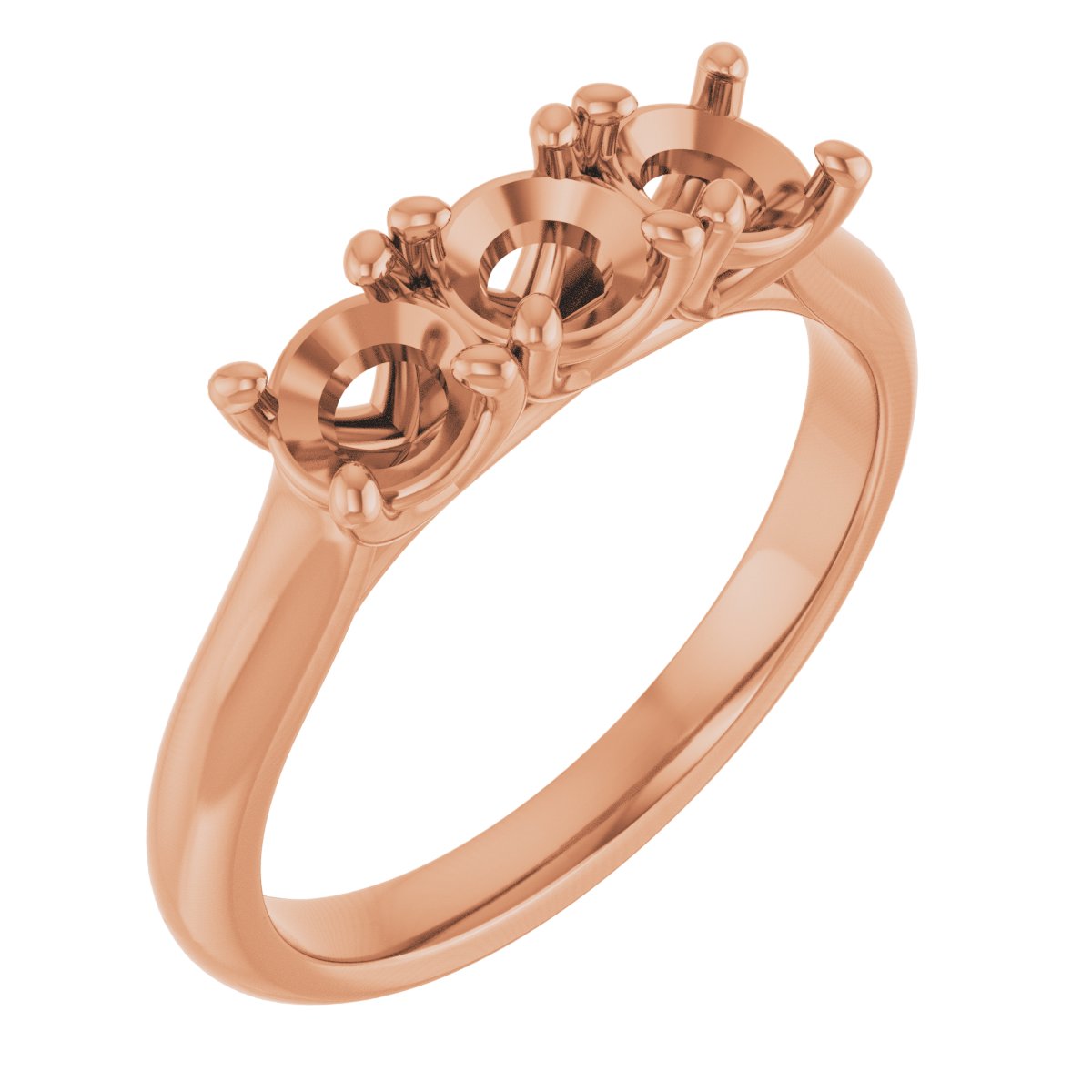 14K Rose 4.4 mm Round Three-Stone Anniversary Band Mounting