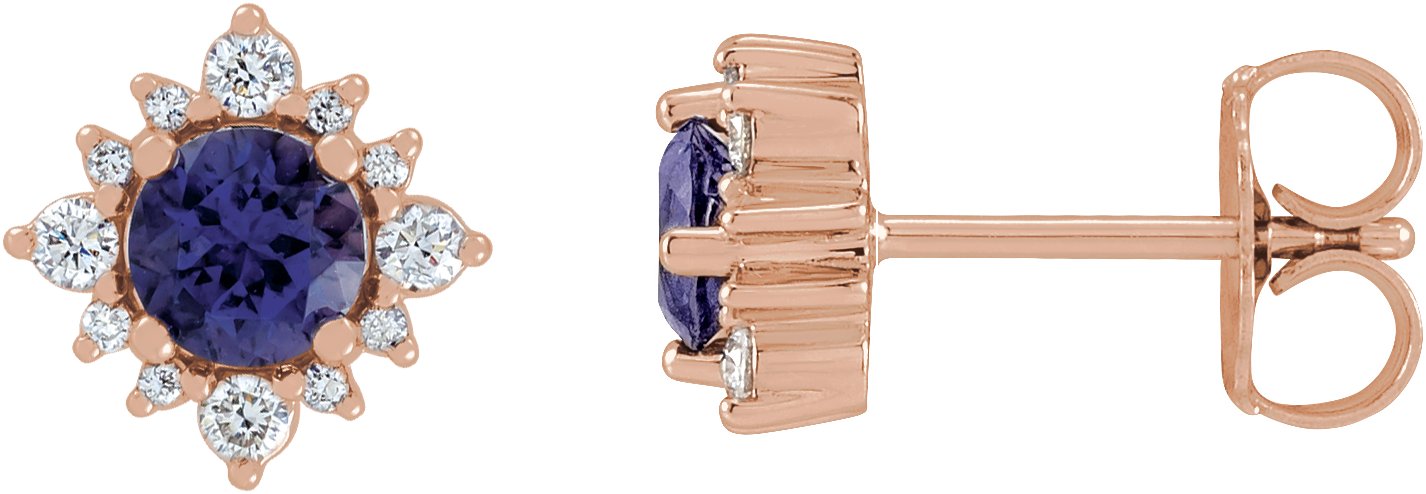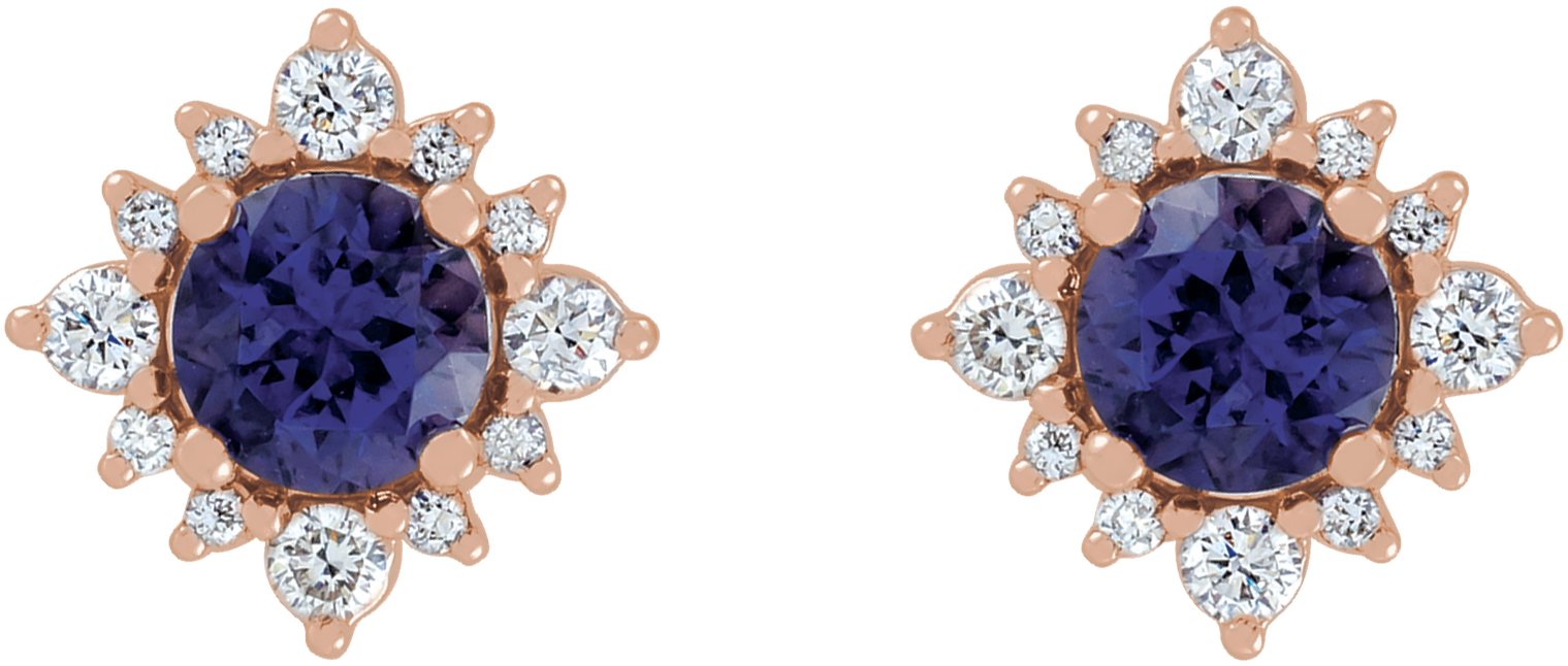 14K Rose 5 mm Natural Iolite and 0.17 CTW Natural Diamond Halo Style Earrings Ref 17586752