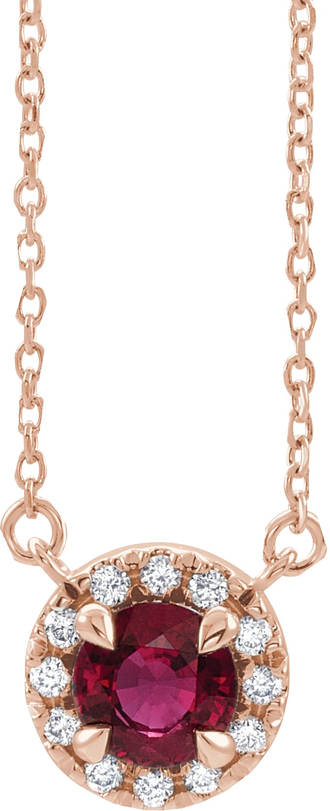 14K Rose 5.5 mm Round Ruby & 1/8 CTW Diamond 18 inch Necklace