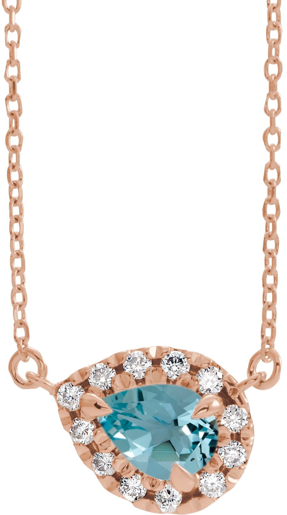 14K Rose 5x3 mm Pear Blue Zircon & 1/8 CTW Diamond 16" Necklace Ref. 16213100