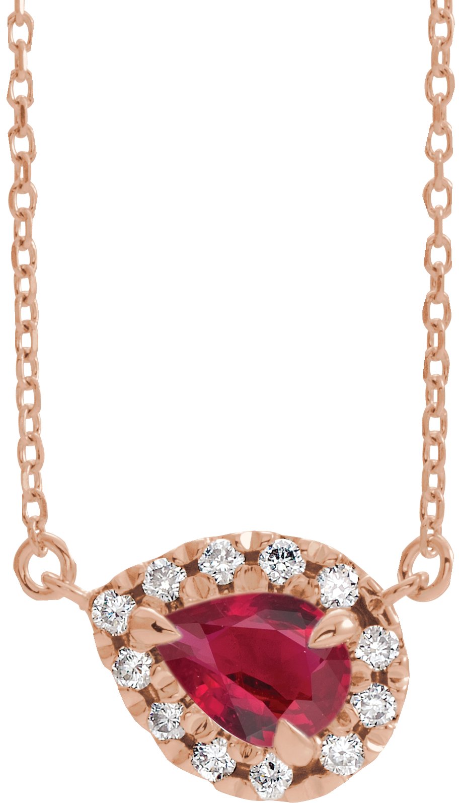 14K Rose 5x3 mm Pear Ruby & 1/8 CTW Diamond 18" Necklace Ref. 16213121