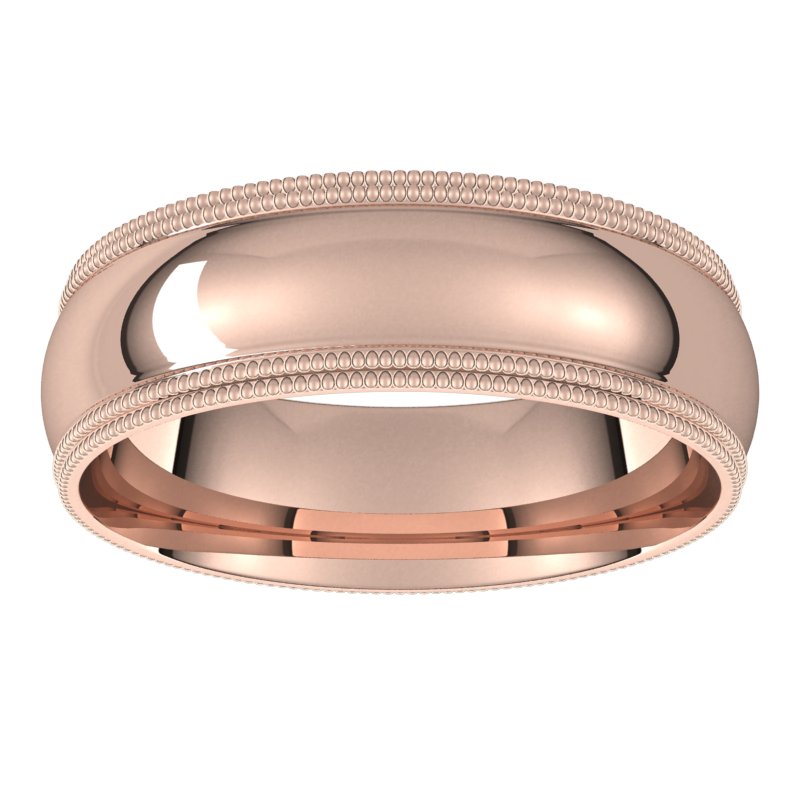 14K Rose 6 mm Double Milgrain Comfort Fit Band Size 10.5