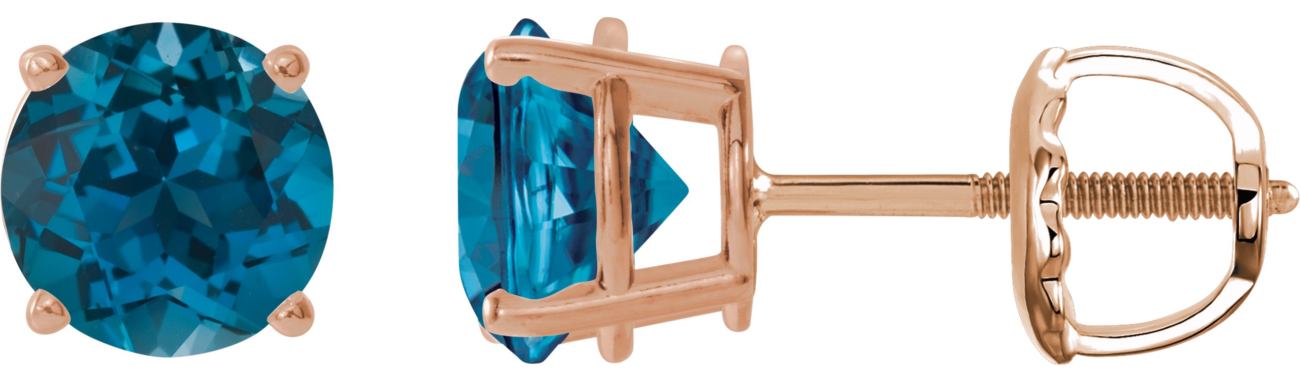 14K Rose 6 mm Natural London Blue Topaz Stud Earrings